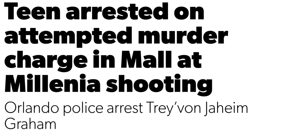ORLANDO, Fla. – A 19-year-old man has been arrested in connection with a shooting Thursday evening near the Mall at Millenia food court, police said.