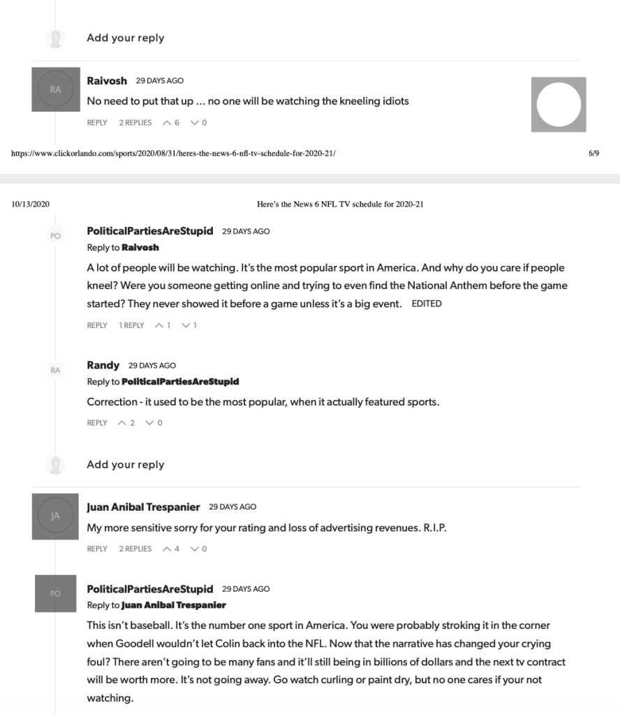 An article advertising the schedule for the upcoming National Felons’ League broadcast season brought out comments which were almost unanimously indifferent to anything NFL. Other than a comment that called out everybody else in favor of a boycott as racist (of course), and another that insisted that football was still popular (based on previous seasons; another comment called out), the rest of the commenters didn’t give a shit.