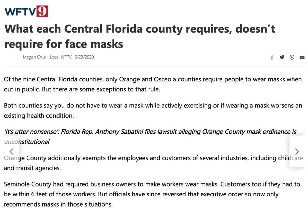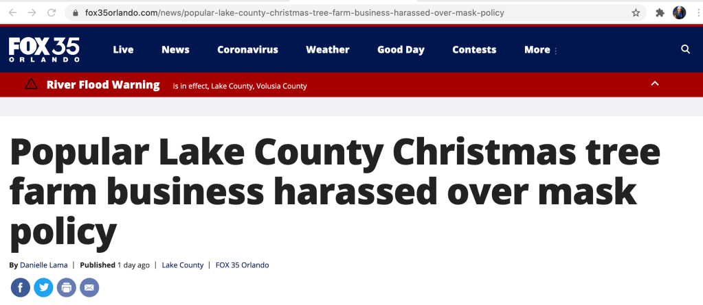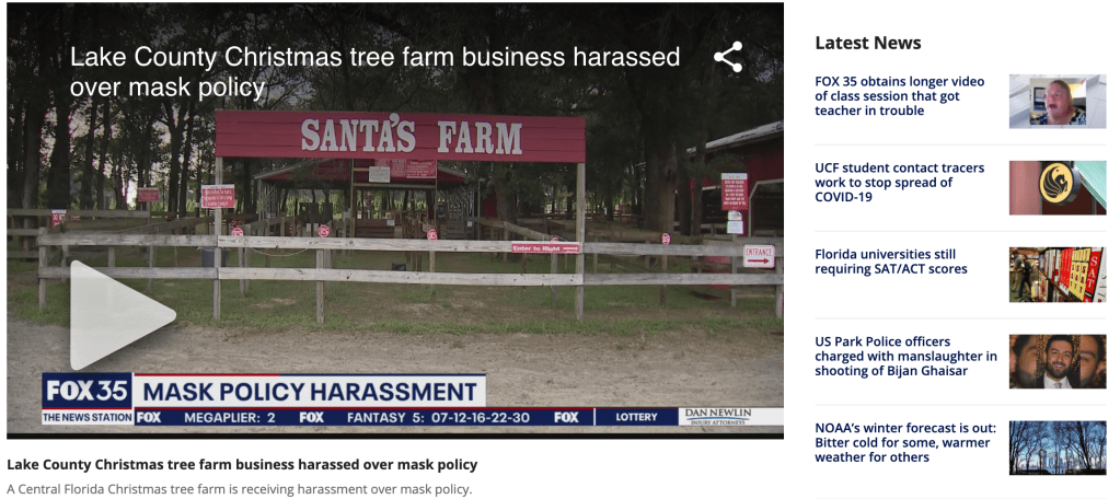 They should have taken a hint from their Facebook messages, recognized that this was a hoax and used the opportunity to market themselves as “mask-free.” Instead, they decided to whine to whatever Orlando corporate media outlet would listen. And a soft-news J-school graduate at Fox 35 picked it up and headed out with a minicam.
