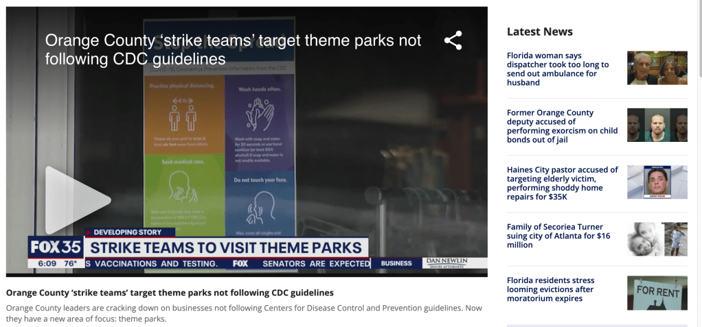 ORLANDO, Fla. – Orange County leaders are cracking down on businesses not following the Centers for Disease Control and Prevention guidelines. Now they have a new area of focus: theme parks.