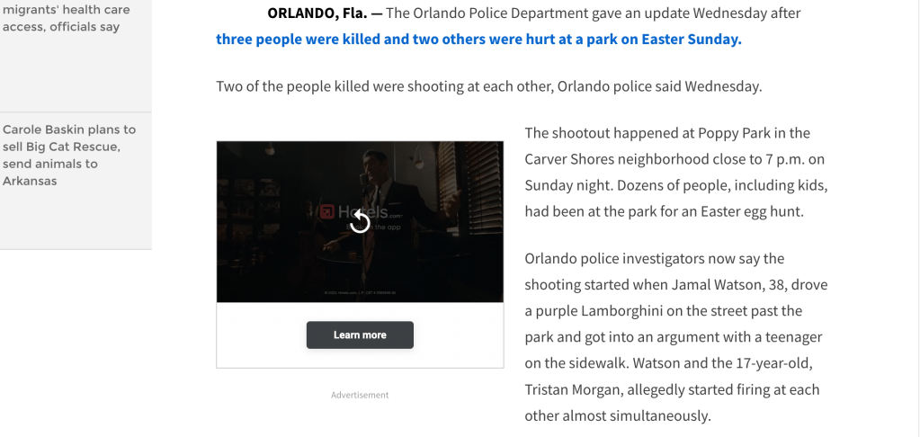 Spectrum News 13 referred to previous shootings in the Orlando neighborhoods of Carver Shores, Parramore and Pine Hills, where their own reporter, Dylan Lyons, was killed. These are all black neighborhoods.