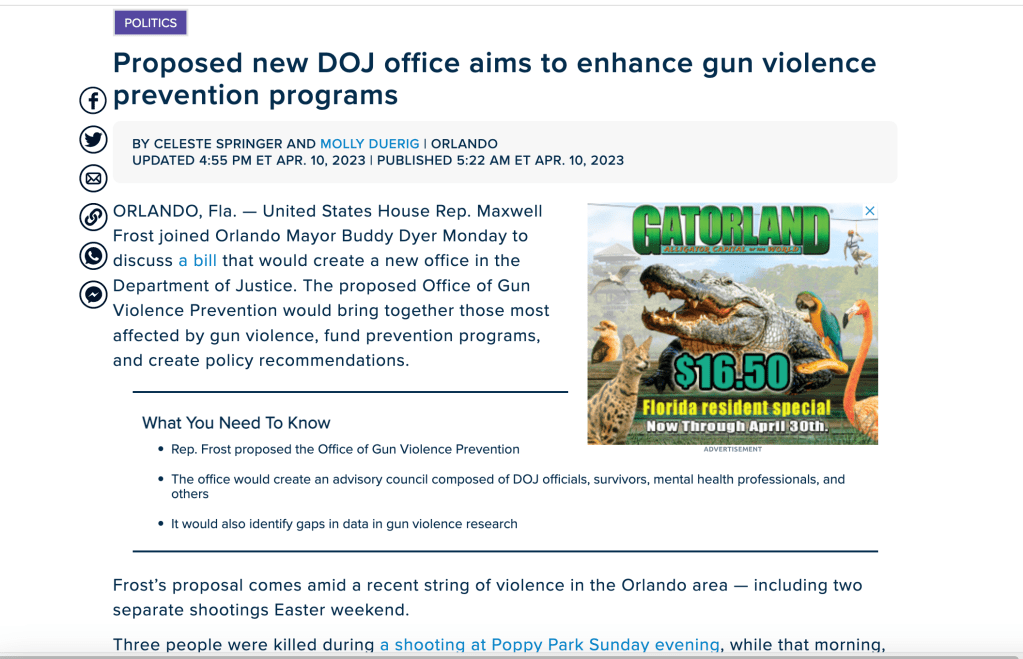 Newly-installed Orlando congress critter Max Frost (D-FL-10) and New Jersey senator Chris Murphy (D-The Garbage State) have proposed legislation which would create a federal “Office of Gun Violence Prevention.” Frost made the announcement alongside Orlando’s white liberal Democrat mayor Buddy “Buddy” Dyer.