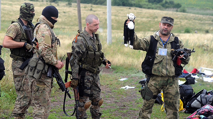A militiaman at the Flight 17 crash site , picked up a teddy bear, then put it back down. But the Bullshit Media claimed he was a looter. So what else were the B.S.M. lying about? (Russia Today)