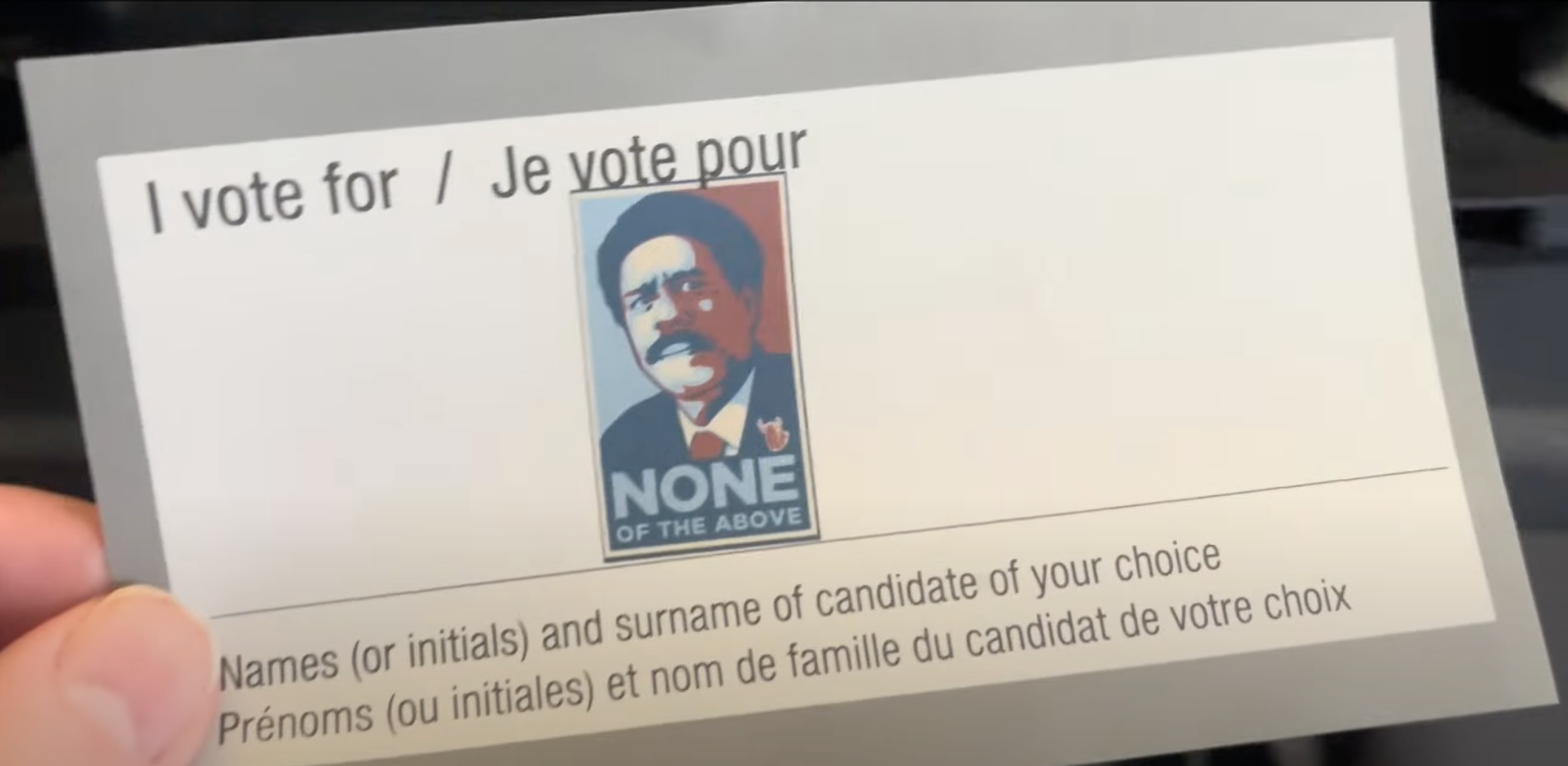 ORLANDO, FLORIDA (April 9, 2025). Returning my overseas election ballot to Canada with Richard Pryor’s “NONE OF THE ABOVE.”